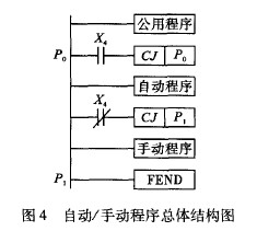 PLC控制的自动/手动程序总体结构如图4所示。